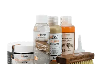 Здесь вы найдете материалы для восстановления кожи в кожевенных мастерских и ателье, профессиональную косметику LeTech для ухода за кожей, включая замшу, нубук и наппу.
