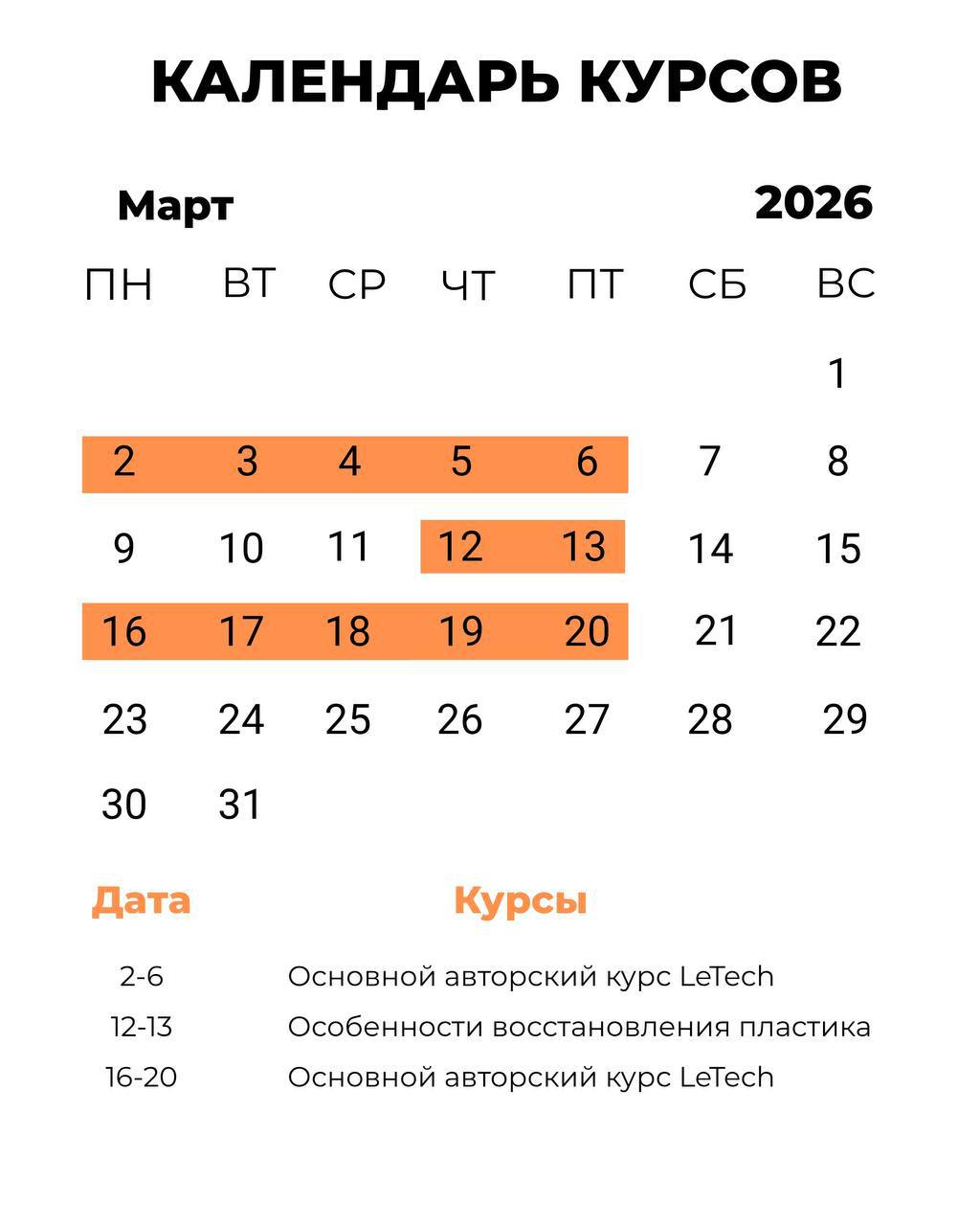 Мы спланировали расписание на март специально так для вашего удобства.